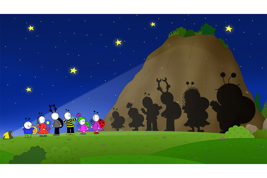 Bogyó, Babóca és barátaik diafilmeket nézegetnek, majd vidám árnyjátékot játszanak. A játékot a sziklafal előtt folytatják, ahol mókás alakokat formálnak. Gömbi, a kis virágbogár megijed a falon látott furcsa árnyaktól, mert azt hiszi, hogy egy óriási szörny költözött az erdőbe. Szerencsére Kelemen, a kanári segít tisztázni a félreértést. Gömbi és Kelemen is csatlakozik a vidám árnyjátékhoz.