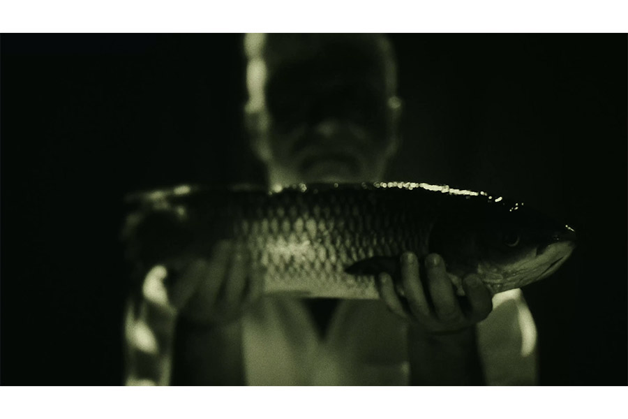 Egy kalapos férfi talán egy halat az utcán. Egy üveg vízbe rakja, majd elindul a folyóhoz. Mire odaér, a hal meghal. A férfi, kezében a hallal, besétál a folyóba.